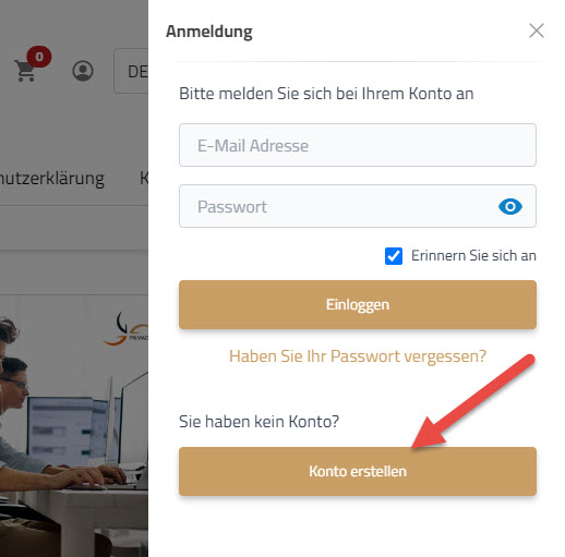 Um ein Konto zu erstellen, klicken Sie nun auf "Konto erstellen".